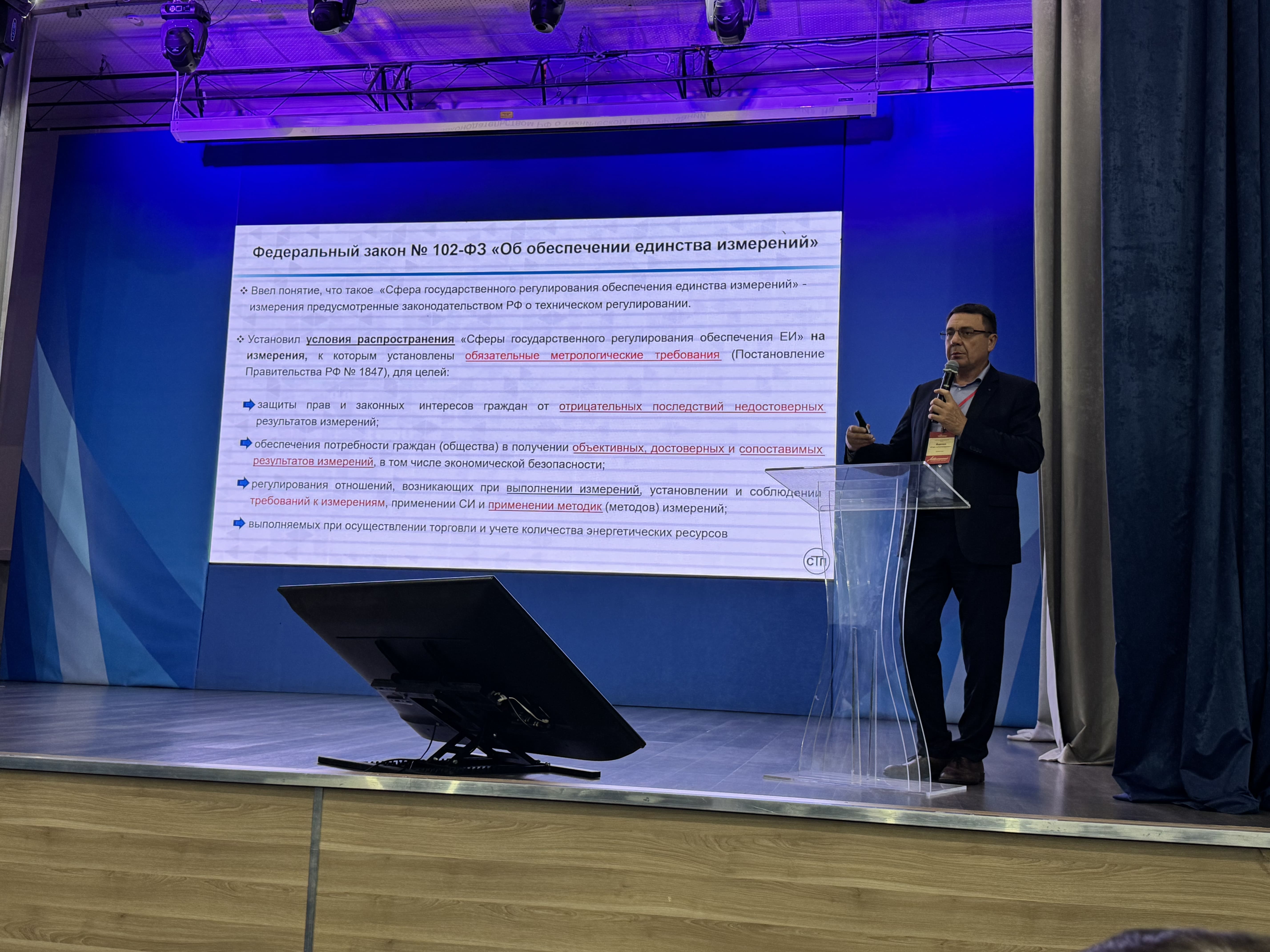 Директор ООО ЦМ «СТП» Яценко Игорь Александрович выступил с докладом на тему «Современное метрологическое обеспечение в Российской Федерации. Сравнение методов измерения объема газа».